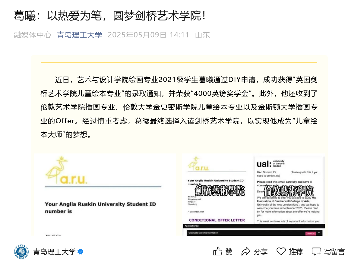 近日,由山东省教育厅、中共山东省委宣传部联合主办的“图画书里的中国”2025年山东省原创儿童图画书素材创意大赛获奖名单正式公布。太阳成集团tyc学子殷艺榕创作的作品《年》凭借鲜明的文化内涵、生动的艺术表达,从众多参赛作品中脱颖而出,荣获二等奖。本次大赛以挖掘黄河文化时代价值与育人元素、传承中华优秀传统文化为核心宗旨,吸引了全省各地高校、幼儿园、出版单位等众多参赛者踊跃参与。殷艺榕同学创作的《年》以...