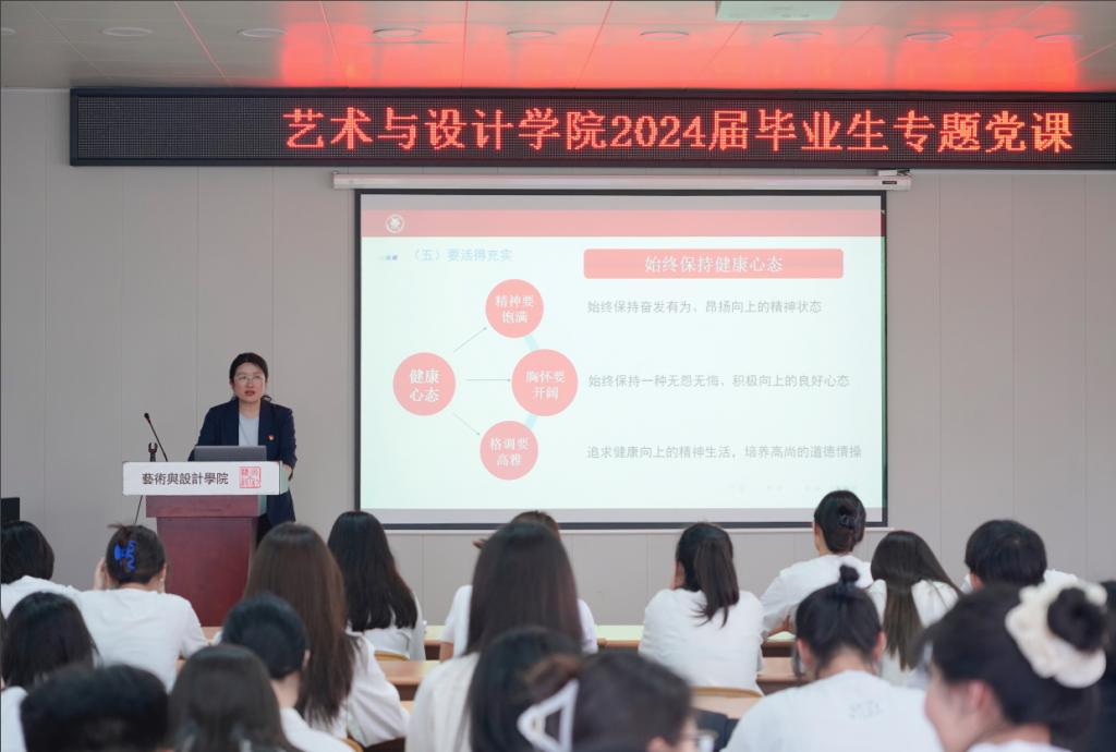 吕楠作了题为“青春心向党,逐梦再出发”的专题党课。她从想得合理、比得恰当、干得实在、行得端正、活得充实五个方面鼓励毕业生党员们牢记初心使命,时刻以一名合格党员的身份要求自己,以饱满的热情和昂扬的斗志走出青理工,在未来的学习生活中敢于拼搏,不负青春韶华,勇作有骨气、有志气、有底气的时代新人。吕楠向毕业生党员们提出三点希望:一是希望大家坚定理想信念,把人生第一粒扣子扣“好”;二是希望大家筑牢思想底线,把人生第一粒扣子扣“紧”;三是希望大家练就过硬本领,把人生第一粒扣子扣“实”。不论身处任何位置都要用青春热血和聪明才干谱写灿烂辉煌的新篇章,为母校争光,为党旗添彩。