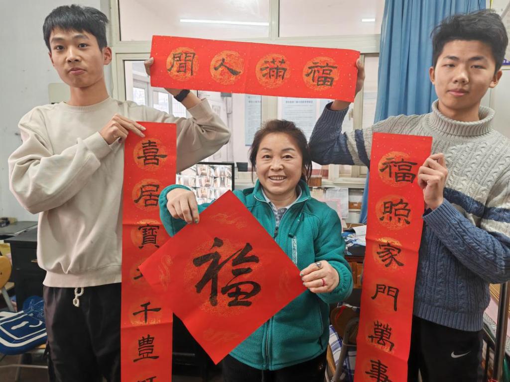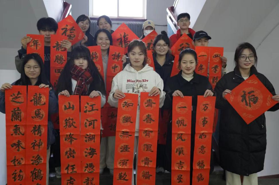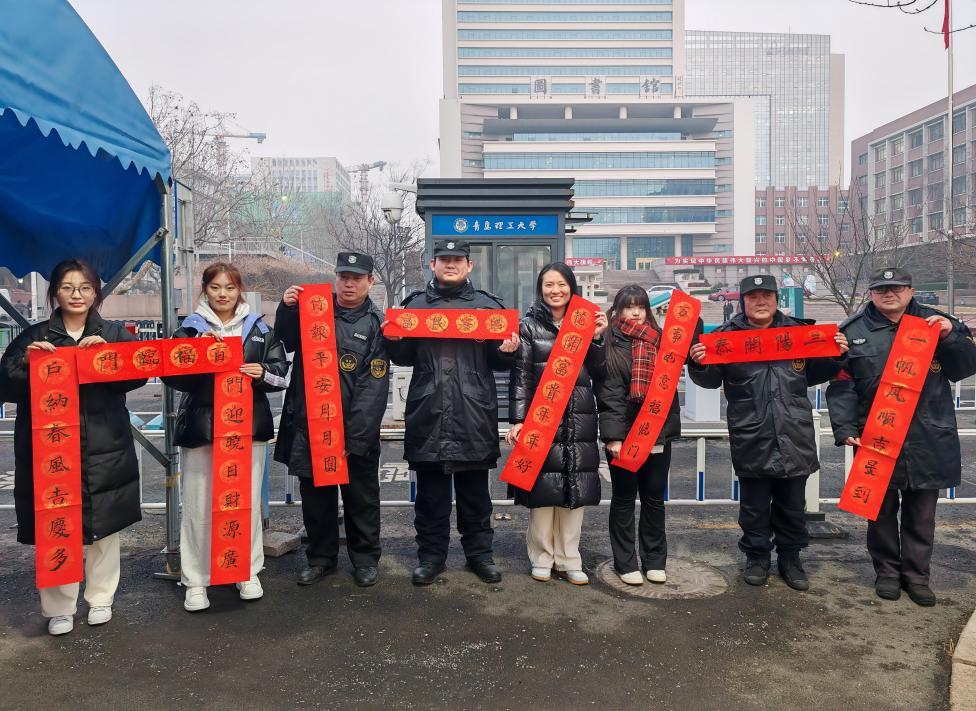 随后,同学们还将充满新春祝福的作品送给教研室各位老师,以及为校园安全和员工宿舍默默付出的保安大叔和宿管阿姨们。在这个寒冬,让他们提前感受到春节温暖祥和的节日气氛。宿管阿姨说“贴上喜庆的春联,过一个欢乐年”。送祝福到校园,不只是送的祝福,更是寄托着同学们对新年的憧憬和向往,传递着迎春纳福、期盼幸福生活的美好愿望。
