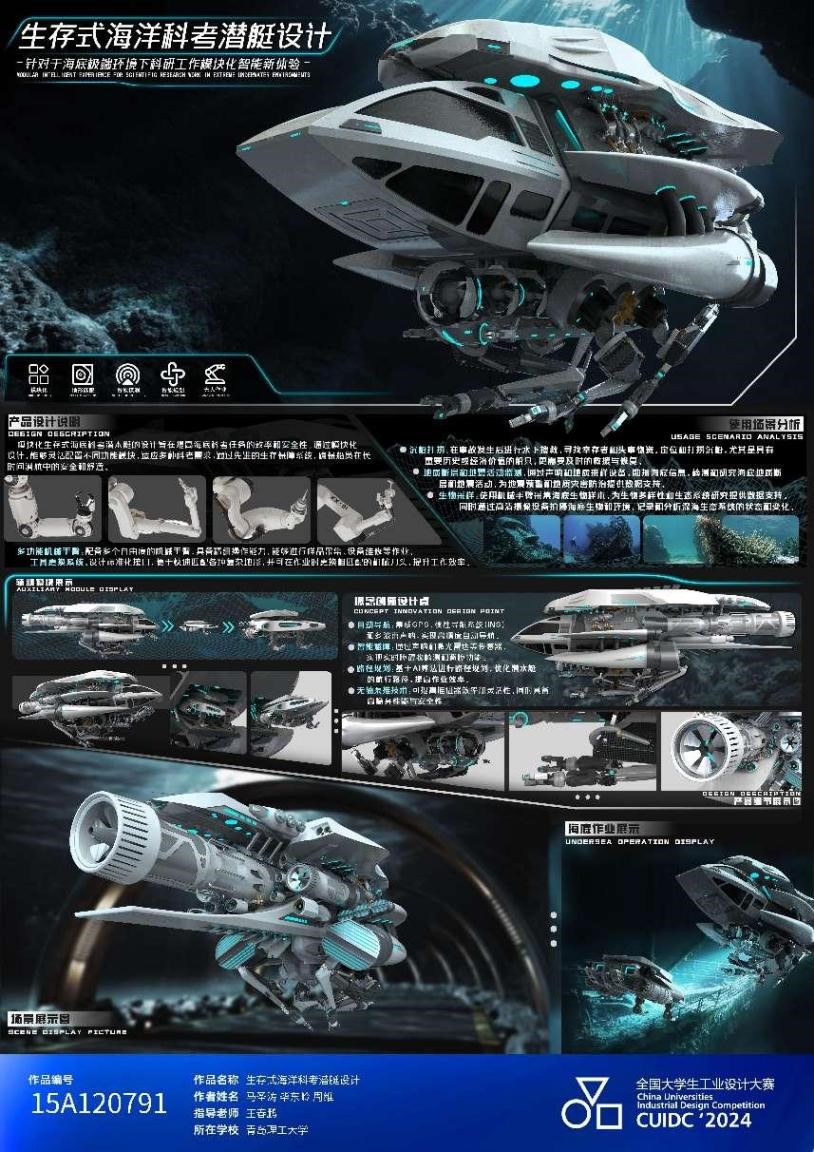 12月19日,教育部高等教育司公布了2024年“全国老员工工业设计大赛”获奖结果。由公司太阳成集团tyc王春鹏教授指导员工团队马圣涛、毕东岭、周维同学完成的作品《生存式海洋科考潜艇设计》荣获全国总决赛银奖,取得了公司在该项赛事中获奖成绩的历史性突破。全国老员工工业设计大赛是教育部公布的榜单竞赛,由教育部高等教育司指导,全国工业设计一流专业建设协同创新平台、专业院校和工业设计协会等单位和组织协办的两年一届的全国老员工学科竞技类赛事。此次全国共有32个分赛区的4万余件作品参赛。本次大赛共评选出特等奖1项、金奖20项、银奖40项、铜奖77项,优秀奖195项。