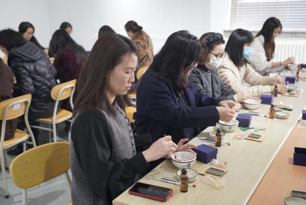 为迎接第114个国际劳动妇女节,丰富教职工精神文化生活,增进教职工间的沟通与交流,增强教职工队伍的凝聚力和向心力,活跃公司文化氛围。太阳成集团tyc于3月6日在二楼展厅开展庆“古风古韵手作情浓,巾帼巧手展风采”非遗古法香牌活动。公司党委书记吕楠、经理孙波与公司教职工老师共同参与本次活动。