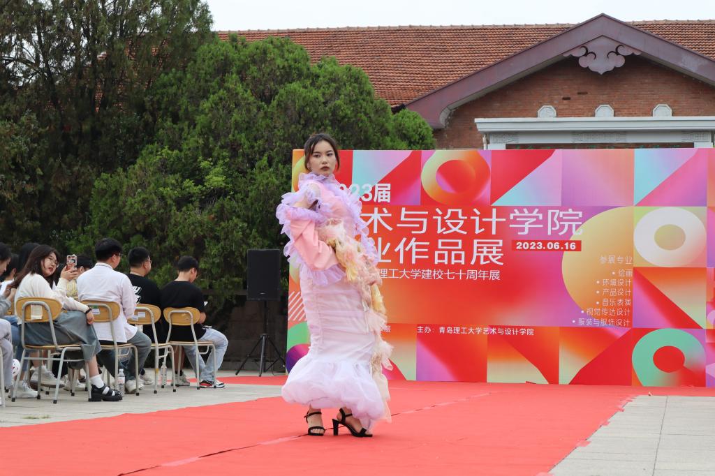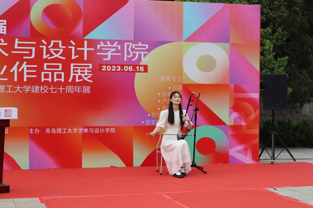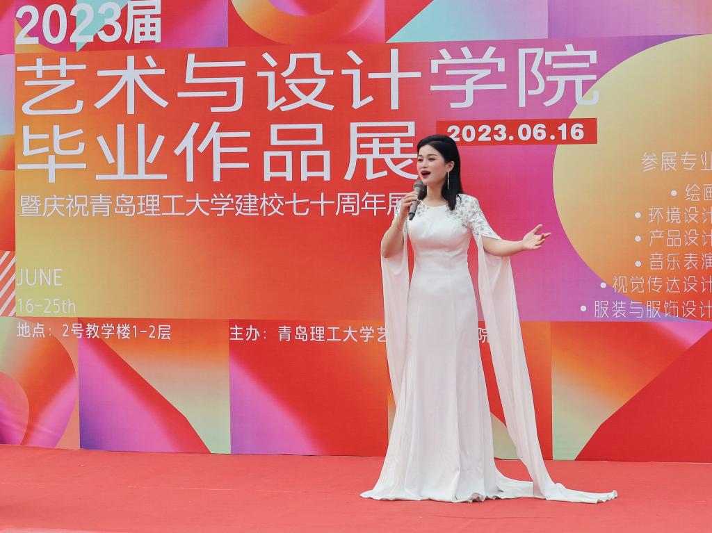 音乐表演专业和服装与服饰设计专业的毕业作品展示也是开幕式的重头戏。音乐系教师张珊珊带来了一曲女高音独唱《我和我的祖国》。