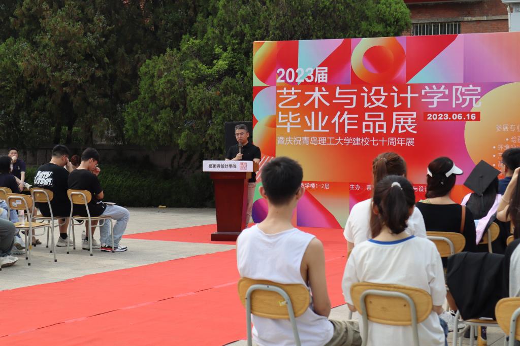 开幕式上,吕楠进行了热情洋溢的致辞。她指出,毕业展是公司推动公司产品改革和提升人才培养质量的重要举措。此次毕业展富有时代气息,彰显了蓬勃的艺术激情、旺盛的艺术创造力和丰富的艺术想象力,是艺术学子以优秀作品向公司建校70周年献礼致敬。她希望同学们坚定艺术理想,秉承“百折不挠、刚毅厚重、勇承重载”理工精神,以青春之名,永远热血沸腾,永远追求革新,永远向美前行!
