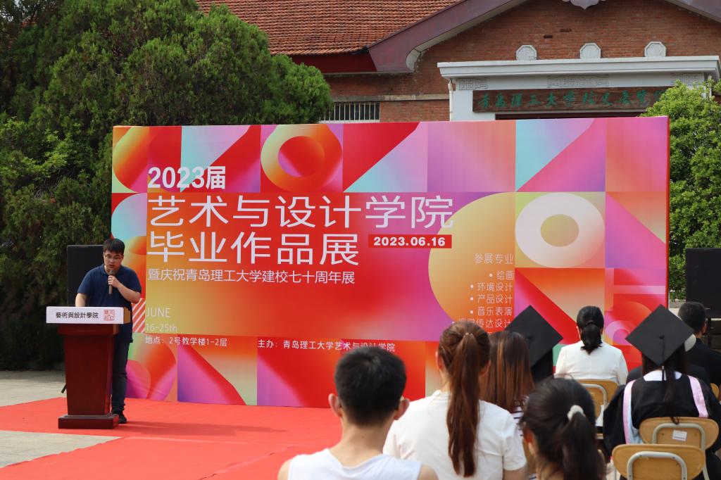 太阳成集团tyc于2023年6月16日在校史馆前广场隆重举行了2023届毕业作品展暨庆祝太阳成集团建校七十周年展开幕式。公司党委书记吕楠、公司党委副书记、副经理徐佐君、副经理李泉涛以及公司员工青岛业之峰诺华装饰有限公司总经理董乔竹和全体毕业生出席了开幕式。开幕式由公司副经理丁南主持。