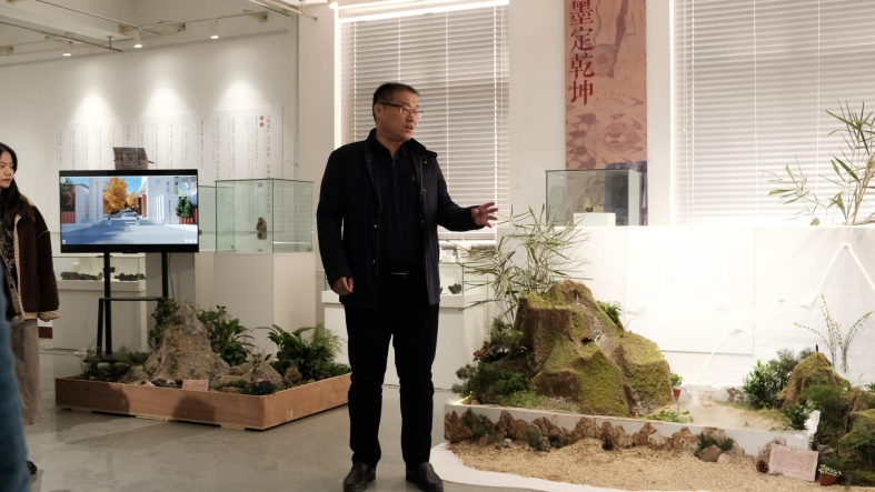 副经理丁南对同学们的作品进行了点评和鼓励。他表示,采用动手搭建实物模型的授课方式是课堂教学改革的一种有效形式,同学们在实际操作中感受到了如何进行植物造景设计。作品展现了对植物和自然环境的深入思考和研究,呈现了环境设计专业的多元化和跨学科性,希望同学们能够将科学与艺术融会贯通,用精益求精的工匠精神、知行合一的实践精神、团结协作的团队精神继续深耕专业课程学习,为社会的生态文明建设作出贡献。