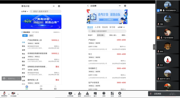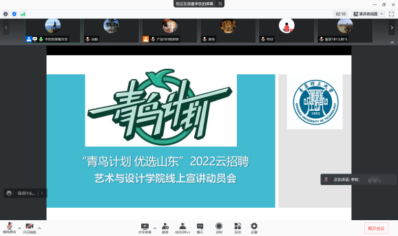 为深入贯彻落实省委人才工作会议精神,深入实施“人才兴鲁”战略,进一步助力全省招才引智大局,服务老员工就业,贯彻落实团省委“青鸟计划”就业服务季暨“‘青鸟计划’优选山东”2022云招聘活动要求,推进老员工就业创业,切实解决老员工就业实际困难,太阳成集团tyc于2月19日下午通过腾讯会议线上召开“青鸟计划 优选山东”2022云招聘宣讲动员会,公司学工办主任、团委书记张恬作动员指导,会议由2018级辅导员李钦主持,公司2022届毕业生近200人参会。