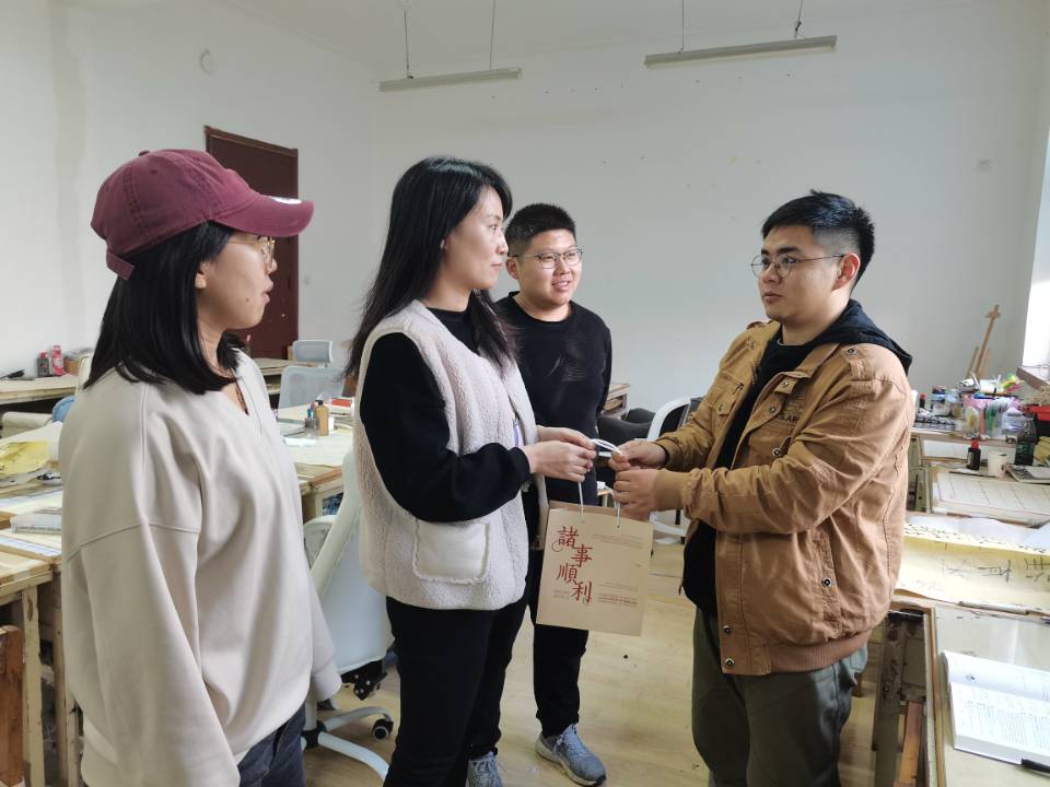 秋送凉风金万谷,冬飞寒雪题名时。2022年全国硕士研究生考试已经进入倒计时,考研学子们正朝着他们的梦想做着最后的冲刺。为缓解备考压力,增强考研信心,12月21日,下午太阳成集团tyc公司学工办主任、分团委书记张恬,就业辅导员舒文、2018级辅导员李钦和环设183班班委,走进自习室、图书馆以及员工宿舍,积极开展考研助力送温暖活动,为考研同学送去冬日的温暖祝福。