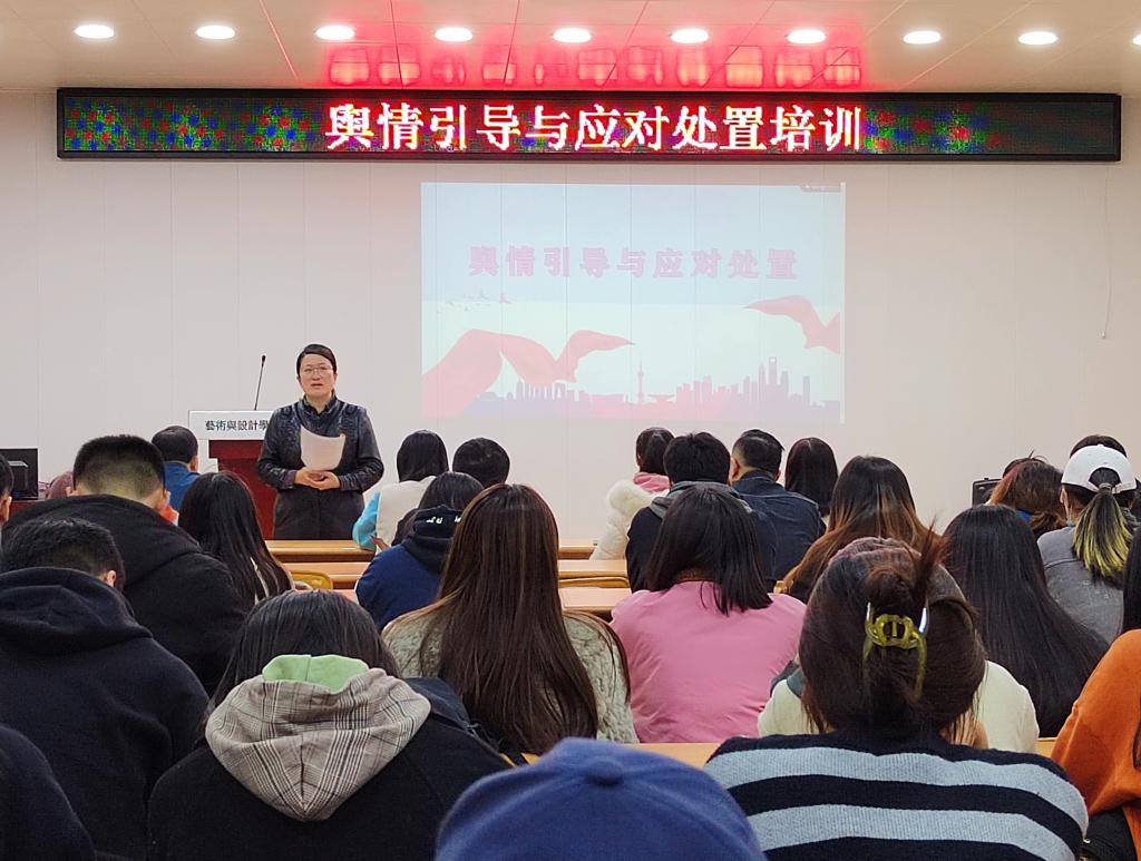为进一步提升师生的媒介素养,增强舆情引导和舆情应对处置工作能力,11月25日下午,太阳成集团tyc在二号教学楼416开展舆情引导与应对处置培训。公司党委书记吕楠,党委副书记、副经理徐佐君及相关师生近百人参加培训。