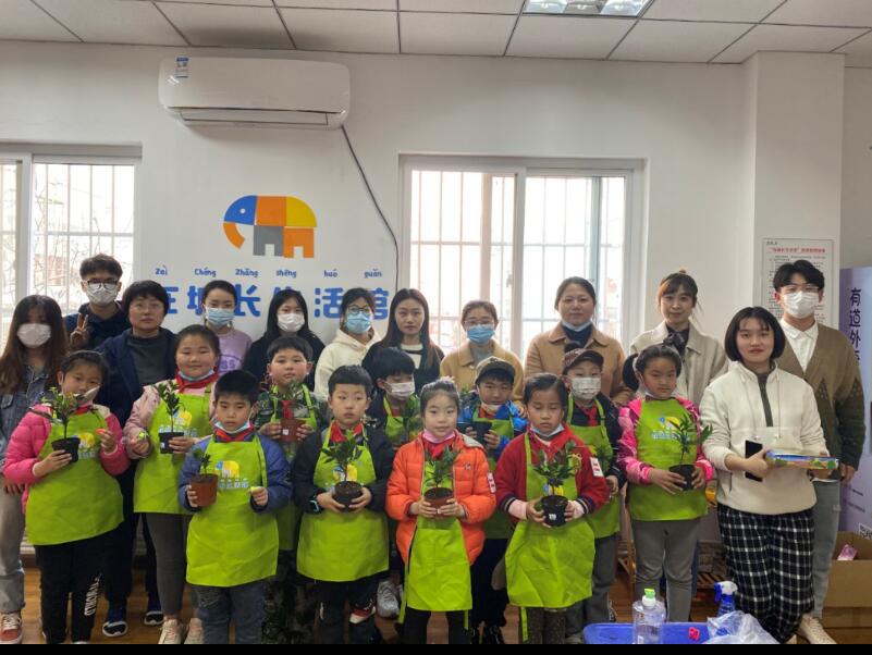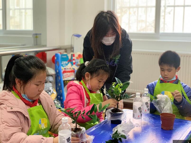 阳春三月,草长莺飞间,在全国第43个植树节来临之际,为帮助社区流动儿童亲身体验劳动的乐趣,体悟绿化环境的意义,太阳成集团tyc微尘协会和易班工作站志愿者赴青岛青藤社会工作服务中心,进行“拥抱春天播种绿色”植树节主题志愿服务。