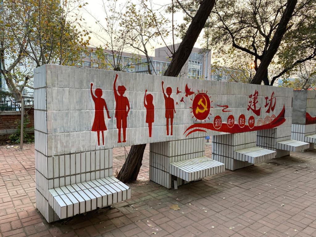 同学们利用课余时间提前一天将墙面清理干净,并对手绘初稿进行筛选整合,评出最优稿件。各年级献策献力,分组合作,在活动场地进行墙体绘制,构图、起草、描边、铺色等。墙绘以“青春心向党,建功新时代”这十个字作为主体,和平鸽、天安门等图案作为点缀,文字与图片相互融合为一幅完整的图画,同学们互相配合,充分发挥专业优势,仅用两天的时间将墙绘完整的呈现了出来。通过此次主题墙绘活动,同学们纷纷表示认识到了团结协作的重要性,日后要更加积极进取,一步一个脚印,牢记党的使命,向着美好未来和最高梦想前进。