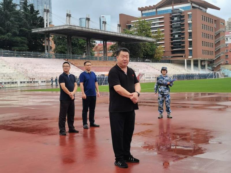 伴随着淅淅沥沥的小雨和同学们高亢激昂的拉歌声,9月15日上午,艺术与设计公司党总支书记、经理孙波,党总支副书记徐佐君,副经理王春鹏、李泉涛,经理助理朱宏轩、丁南,学工办主任、分团委书记王俊富和2020级新生辅导员王凯一同走进军训场地进行了一场别开生面的新生入学教育。
