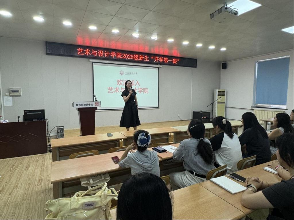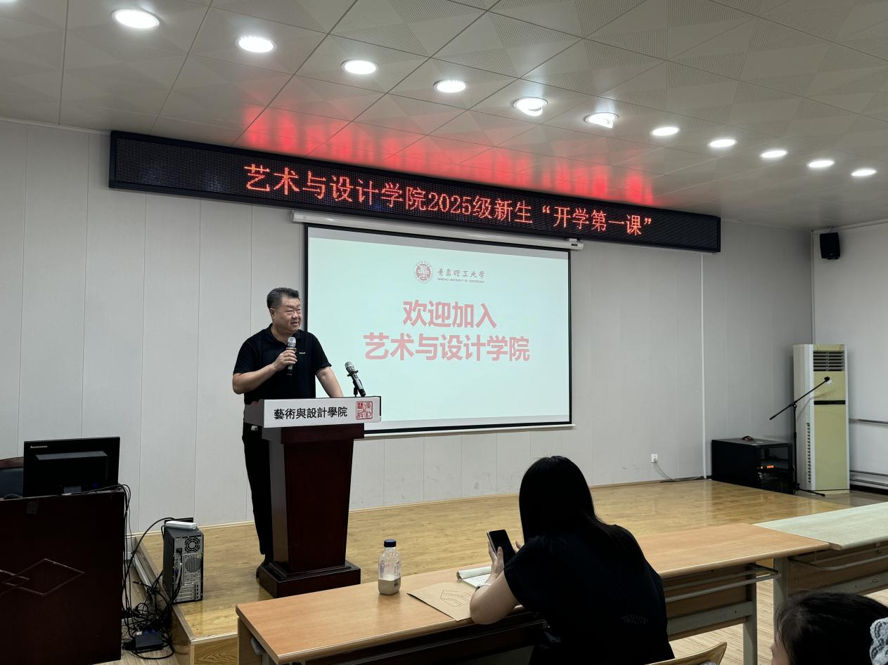 为纪念中国人民抗日战争暨世界反法西斯战争胜利80周年,深化2025级新生爱国主义和理想信念教育,2025年9月2日上午,艺术与设计公司党委书记孙波以“扣好人生第一粒扣子,以青春之笔绘就爱国底色”为主题,为2025级新生讲授入学第一课。入学第一课由公司副书记、副经理张恬主持,2025级新生参加。