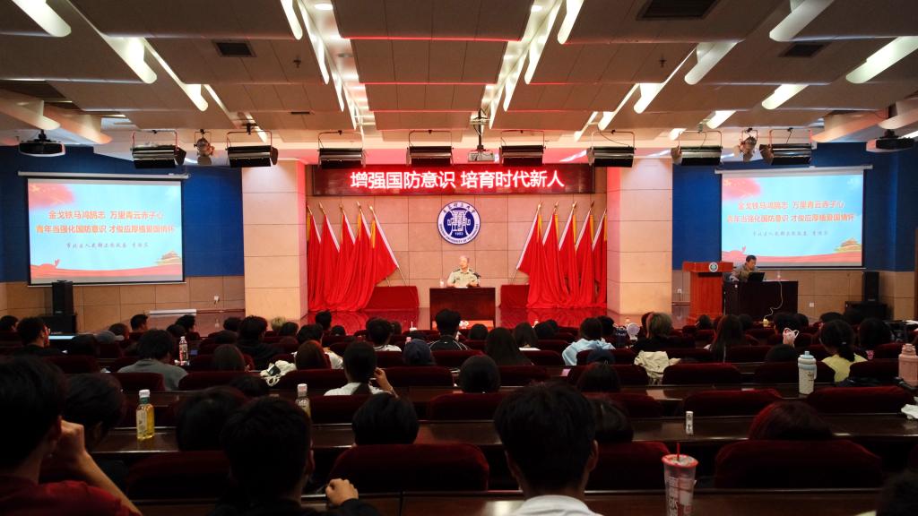 讲座伊始,李政委以其深厚的国防理论素养与24年躬耕军队政治工作的丰富阅历切入主题。他以“金戈铁马鸿鹄志 万里青云赤子心 青年当强化国防意识 才俊应厚植爱国情怀”为纲,从理论的高度与现实的角度,深刻阐释了国防作为国家安全基石的重要意义,引导新生思考个人前途与民族命运的紧密联结。