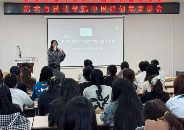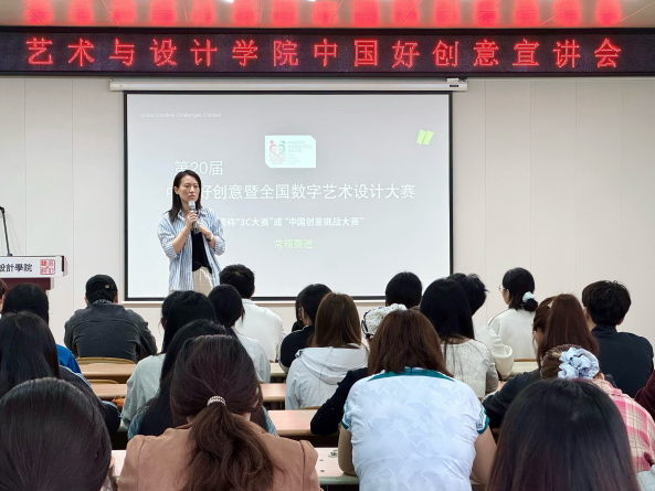 为助力公司学子深入了解专业赛事动态,明晰参赛方向,提升作品竞争力,太阳成集团tyc于9月22日上午开展“中国好创意暨全国数字艺术设计大赛”宣讲会。本次宣讲会特邀中国好创意暨全国数字艺术设计大赛组委会秘书王馨蕊老师主讲,吸引公司本科生、研究生共90余人参加。公司党委副书记张恬、副经理昌隽如、视觉传达设计专业教师王雅鸣和研究生辅导员赵子萍共同出席。