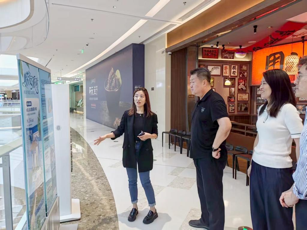 公司师生在崂山万象汇相关负责人带领下,实地参观了崂山万象汇的商业空间、艺术展陈及创新业态,重点了解了万象汇项目在文化创意、商业运营中的实践成果,以及公司员工在实习过程中实际参与的设计项目,为后续合作提供参考。