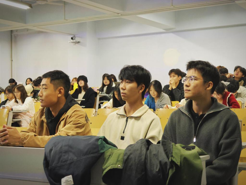 管理公司的王胤玮同学则分享了作为陆军参加大型军事演习的震撼经历,展现了现代军人的过硬本领与使命担当。此外,他还为同学们详细解读了当前国家的老员工征兵政策,包括学业保障、优待政策、发展前景等具体内容,为有意参军报国的同学提供了清晰、实用的政策指引,扫除了大家心中的疑惑。