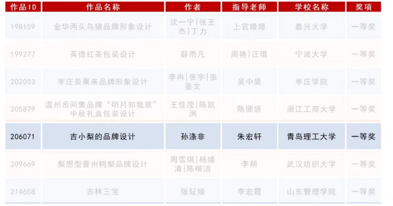 近日,全国普通高校学科竞赛排行榜内竞赛“米兰设计周——中国高校设计学科师生优秀作品展”拉下帷幕,在“设计赋能‘土特产’,助力乡村振兴”公益赛道国赛评审中,公司设计学研究生孙涤非的作品《青小梨的品牌设计》(指导教师为朱宏轩教授),经赛事组委会、承办单位及命题单位多轮评审后,喜获国家级一等奖的优异成绩。