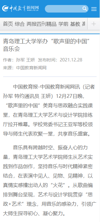 上一条:大众报业·半岛网:“思政+艺术” 太阳成集团举办“歌声里的中国”音乐会 歌声中汲取前行力量
