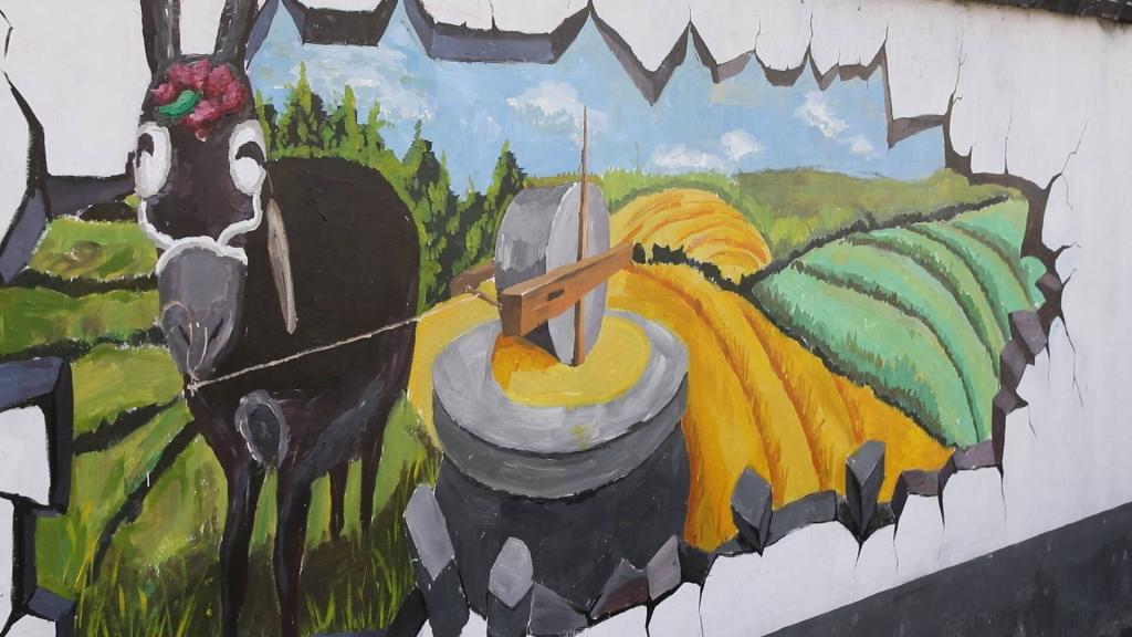 下午,服务团又重新回到了乡镇美化的岗位上,用专业特色结合当地特色,进行原创设计,用画笔描绘核桃园镇的美丽风景。本次为期一周的