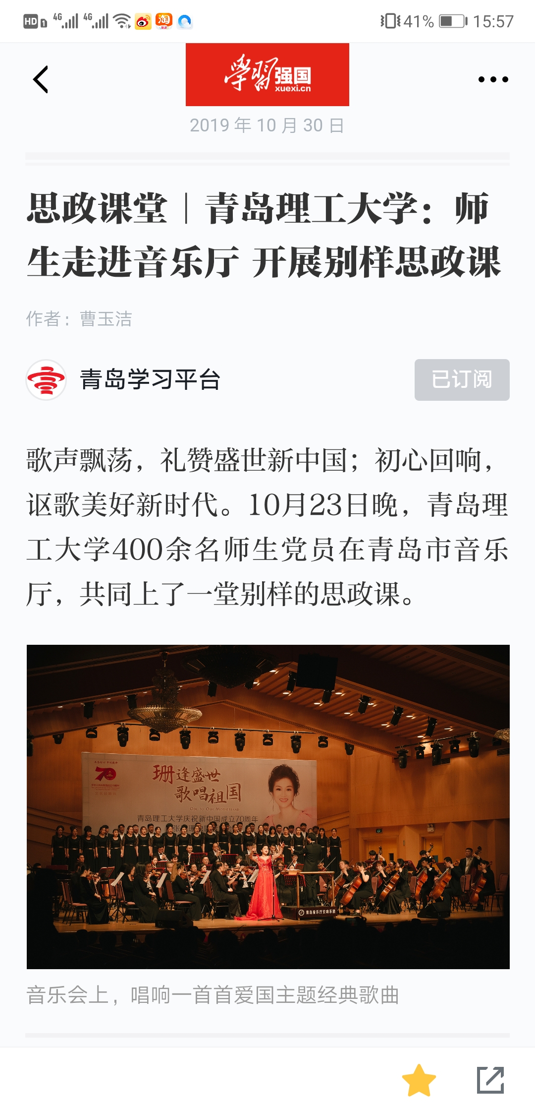 歌声飘荡,礼赞盛世新中国;初心回响,讴歌美好新时代。10月23日晚,太阳成集团400余名师生党员在青岛市音乐厅,共同上了一堂别样的思政课。