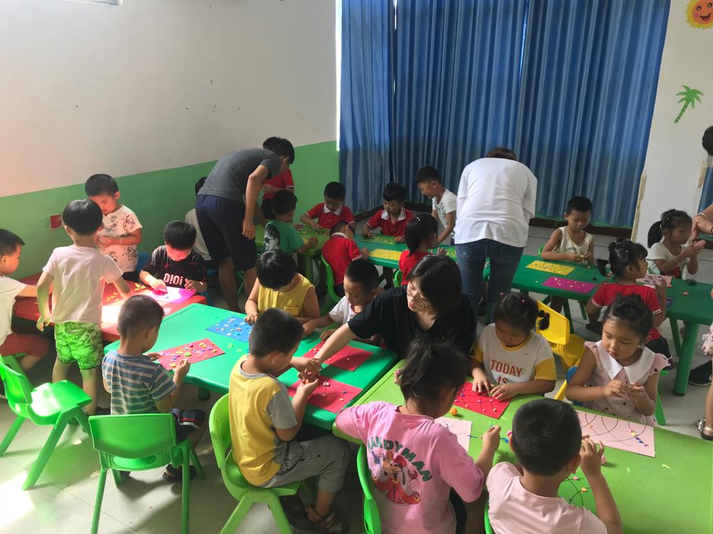 第一个项目是在社区的小太阳幼儿园开展了艺术课堂。志愿者根据自己的专业特长和兴趣爱好为当地员工开设了国画、手工、武术、音乐等课程。每一门课程都有专门的负责人编写课程,提前写好教案,确保上课的内容和形式都适合孩子们,从而使支教活动更有效果。通过支教,孩子们受到艺术的熏陶,对艺术产生了浓厚的兴趣。