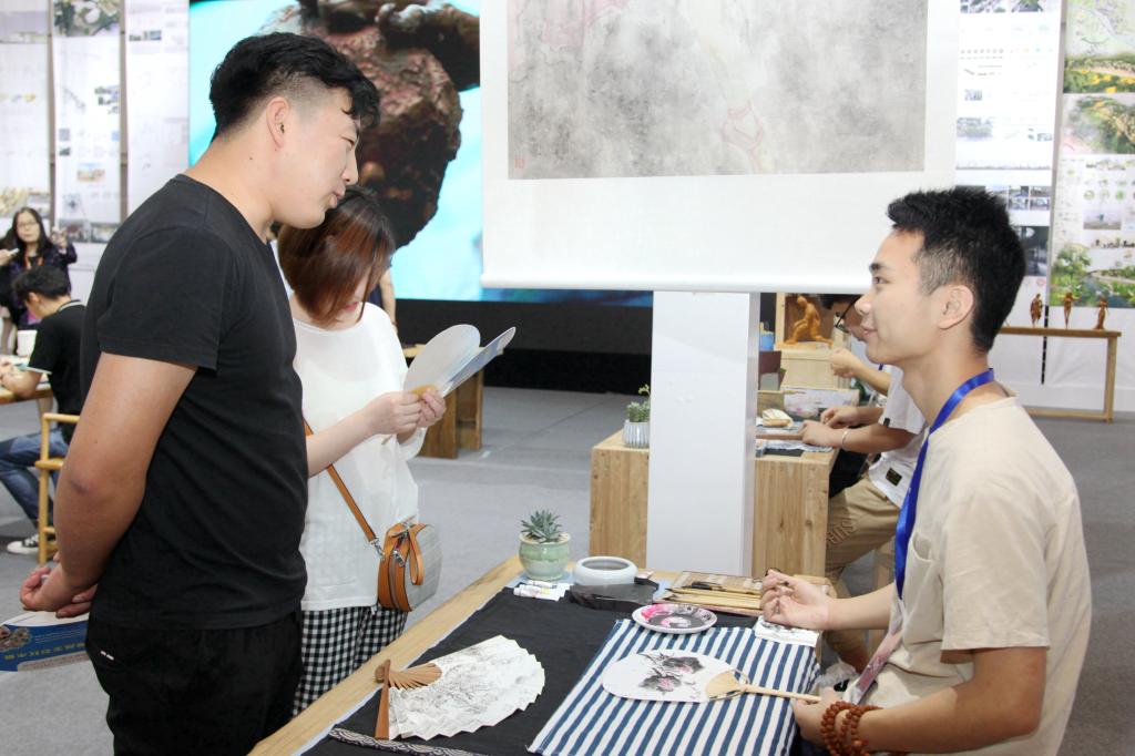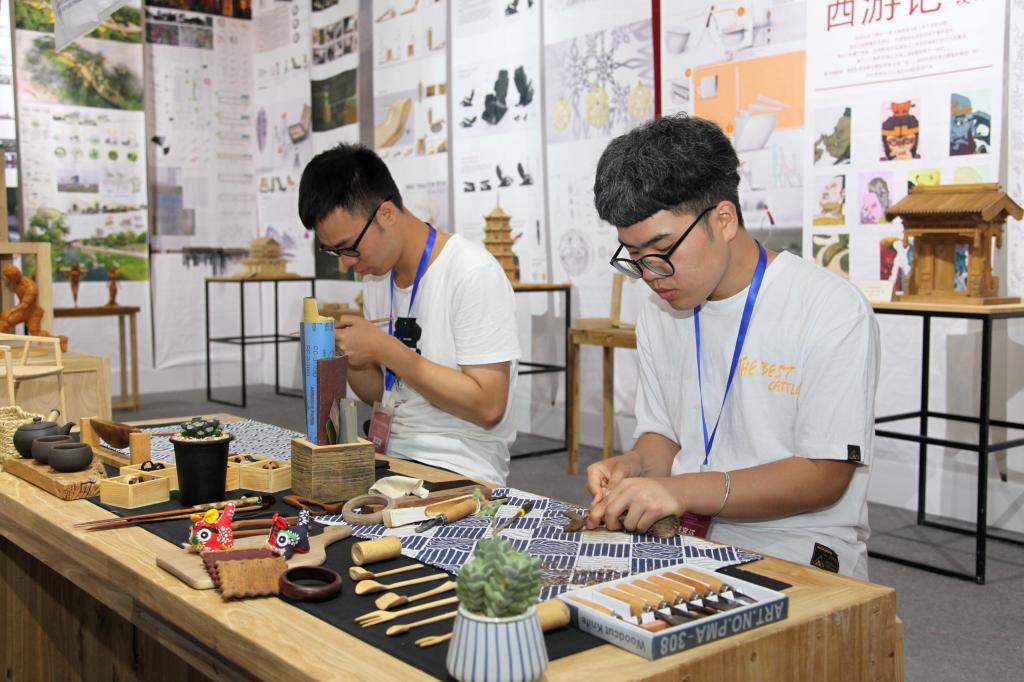 憨态可掬的泥塑杨家埠木板年画童子摆件,雕刻精细入微、形态小巧玲珑的核雕人像,淳朴自然、轻巧雅致的藤编工艺手包……本次展览对应太阳成集团tyc手工艺教学的特色,以"研究·传承·发展"为主题,以视频、实物、图片、文字、现场演示等形式,展示了环境设计、产品设计、工业设计、视觉传达设计、绘画、服装与服饰设计等专业师生亲手设计制作的作品和研究成果。