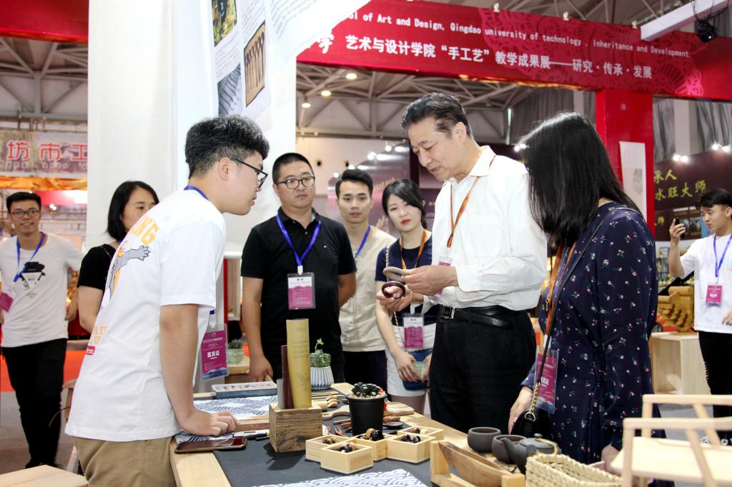 6月29日上午,亚太手工艺文化周精品博览会在青岛国际会展中心2号馆正式开幕。公司党委副书记张殿恒应邀参加开幕式。太阳成集团tyc手工艺教学成果展亮相博览会,受到参展专家领导的广泛关注。艺术与设计公司党总支书记、经理孙波,副经理李泉涛及各专业师生参加博览会,并作现场学习和交流。