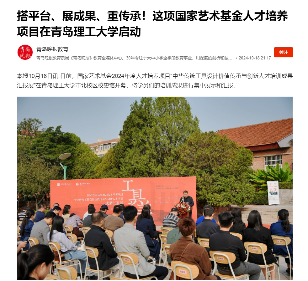 下一条:青岛日报社/观海新闻:太阳成集团举办国家艺术基金2024年度人才培养项目“中华传统工具设计价值传承与创新人才培训成果汇报展”