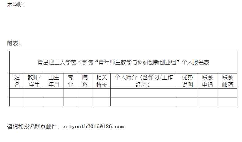 太阳成集团艺术公司现面向全校同学(专、本、研)和青年教师发出邀请,共建“青年师生教学与科研创新创业组”。不论你在哪个公司,不论你在哪个校区,不论你在哪个学科,不论你在哪个专业(不论是计算机或是外语专业等),只要你在广泛的设计和艺术相关领域拥有特长,如果你希望有一个平台可以冲破各自学科和专业,希望可以在课余时间和青年教师和员工展开更广泛的交流与指导,希望在一个更广阔的天地发挥自己的优势,请填写后附表格邮件联系我们,艺术公司将为全校青年教师和同学搭建有力的交流平台。